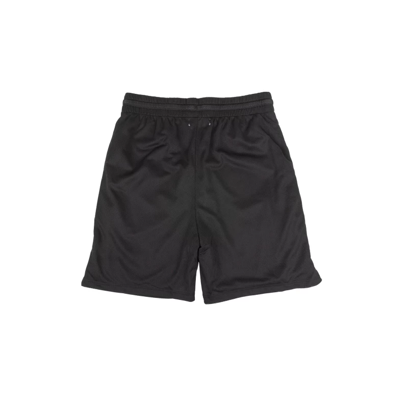 • Perforated double-layer fabric shorts, on-seam side pockets, side splits at hem, elastic waistband, white drawcord with metal tips