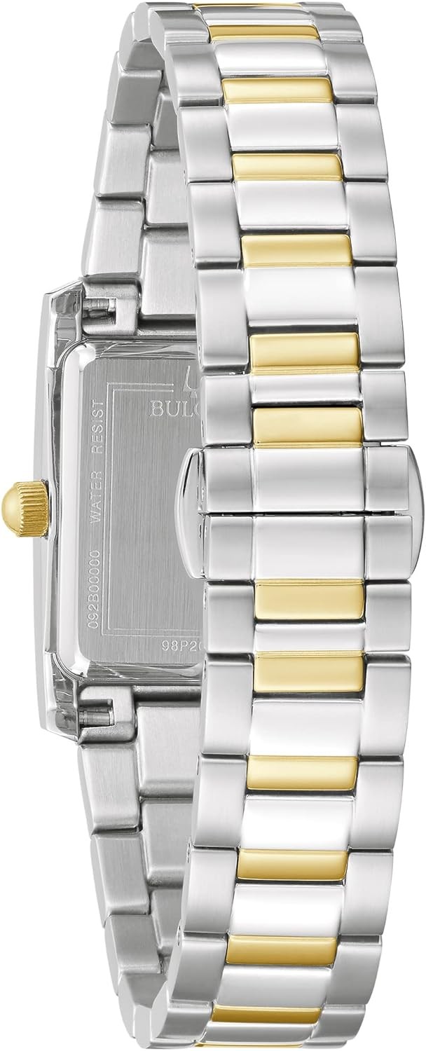 Bulova Ladies' Classic Diamond Two-Tone Stainless Steel 3-Hand Quartz Watch, Rectangle Silver Dial Style: 98P205