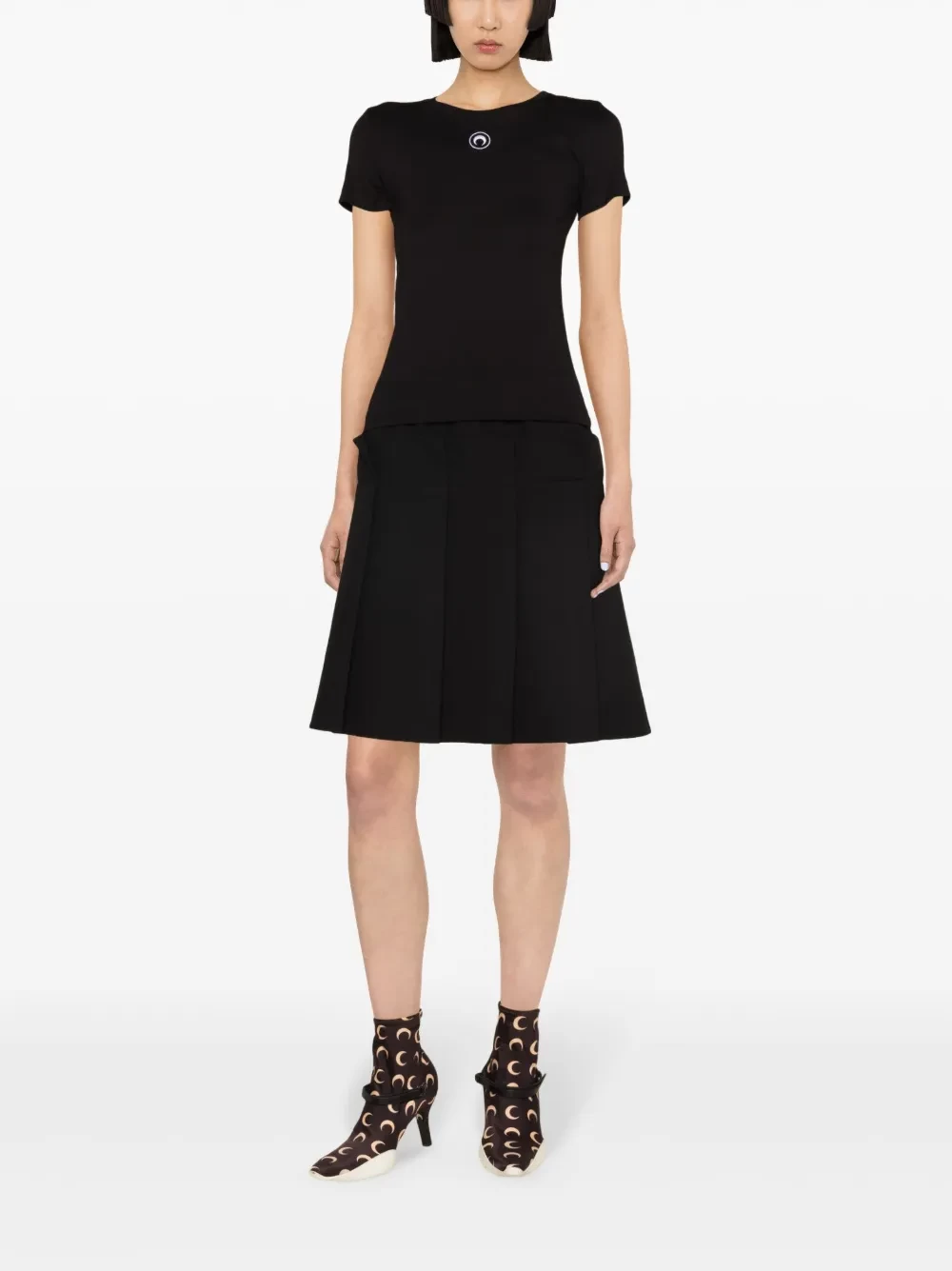 Marine Serre puts its stamp on the classic short-sleeved T-shirt. Crafted from organic cotton, it’s embroidered with a tonal black Crescent Moon logo, upholding the label’s bold visual identity.