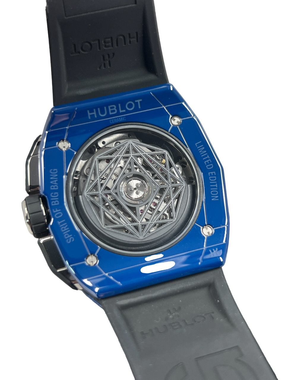 Indulge in the epitome of luxury with the Hublot 648.EX.0151.RX.MXM24. Incredibly complex 42 mm beveled case fits perfectly on the wrist. Blue ceramics and crazy design by the best tattoo artist in the world Bushi. Limited edition of 200 copies.