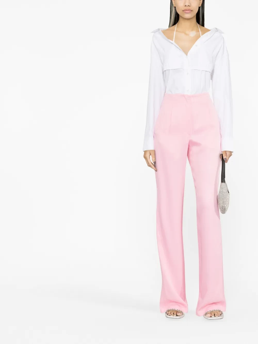 Alexander Wang’s shirt is an experimental take on classic styles. The white poplin construction is punctuated by a bikini-inspired layer, complete with triangle cups and a halterneck tie fastening.