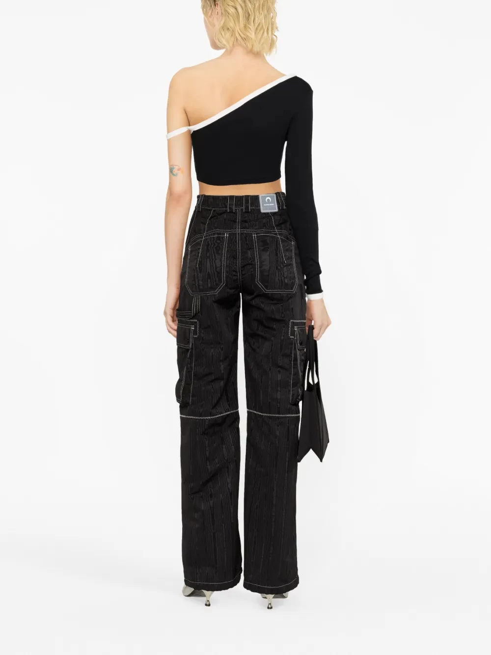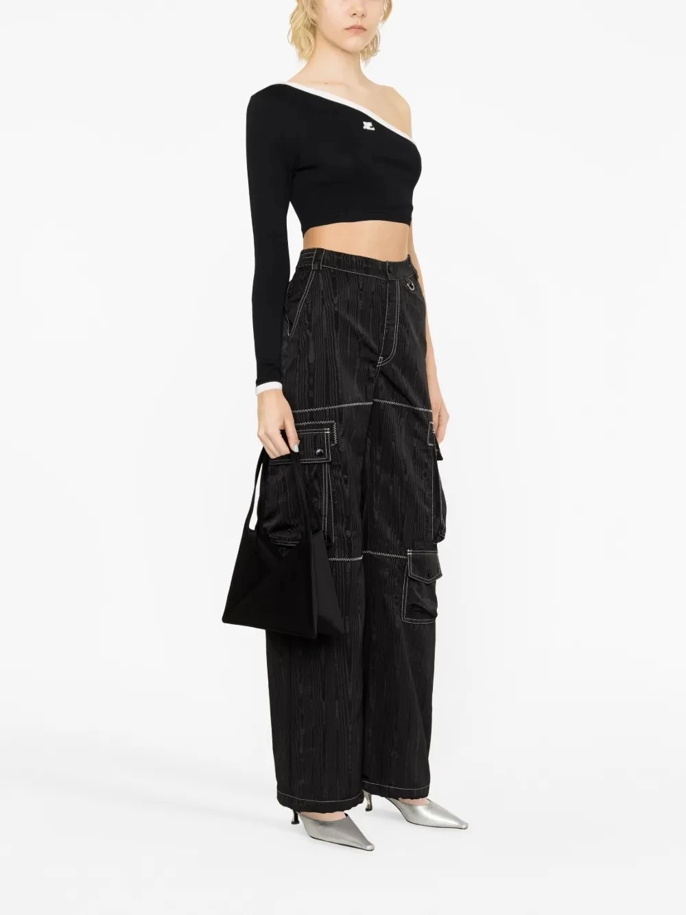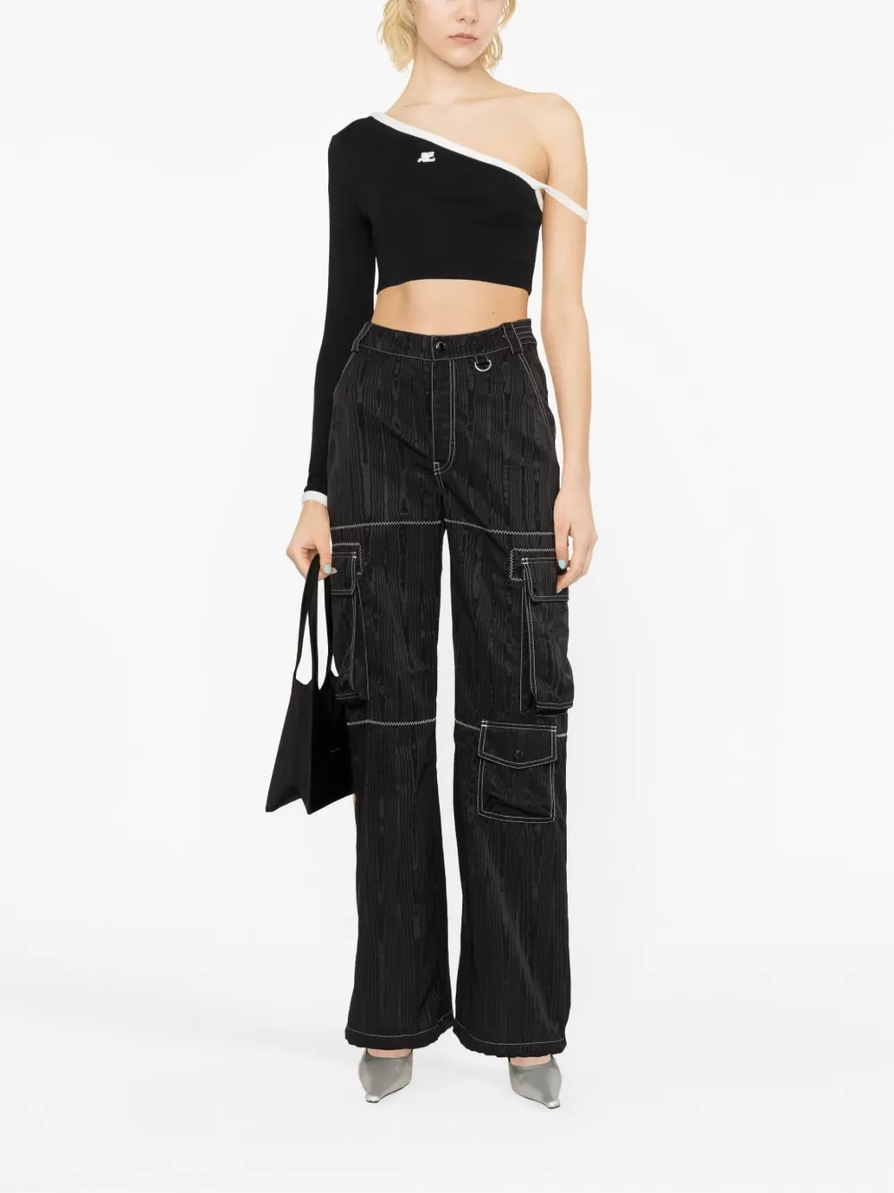 Known for its streamlined and modern silhouettes, Courrèges presents this knitted top for SS23. Crafted from cotton, the one-shoulder design features contrasting trims along the neckline and cuff and is finished with the label's logo at the chest.
